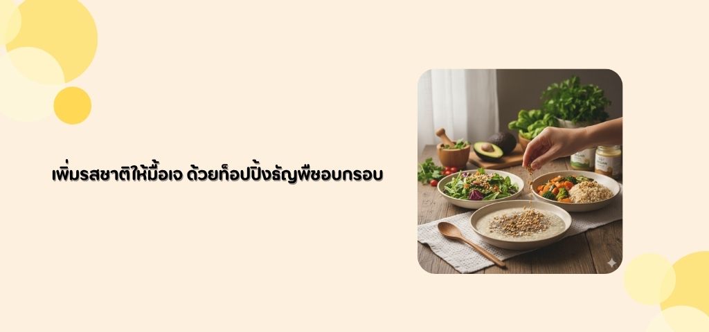 เพียงแค่เติม “ท็อปปิ้งธัญพืชอบกรอบ” ลงในมื้ออาหาร คุณก็จะได้ทั้งความอร่อย เคี้ยวเพลิน และคุณค่าทางอาหารครบถ้วนในคำเดียว เหมาะสำหรับคนที่อยากดูแลสุขภาพในช่วงเจ และอยากให้อาหารแต่ละมื้อมีความพิเศษมากขึ้น เพราะ “การกินเจไม่จำเป็นต้องจืดชืดเสมอไป” แค่เลือกของดีจากธรรมชาติ ก็อร่อยและดีต่อใจได้ทุกวัน